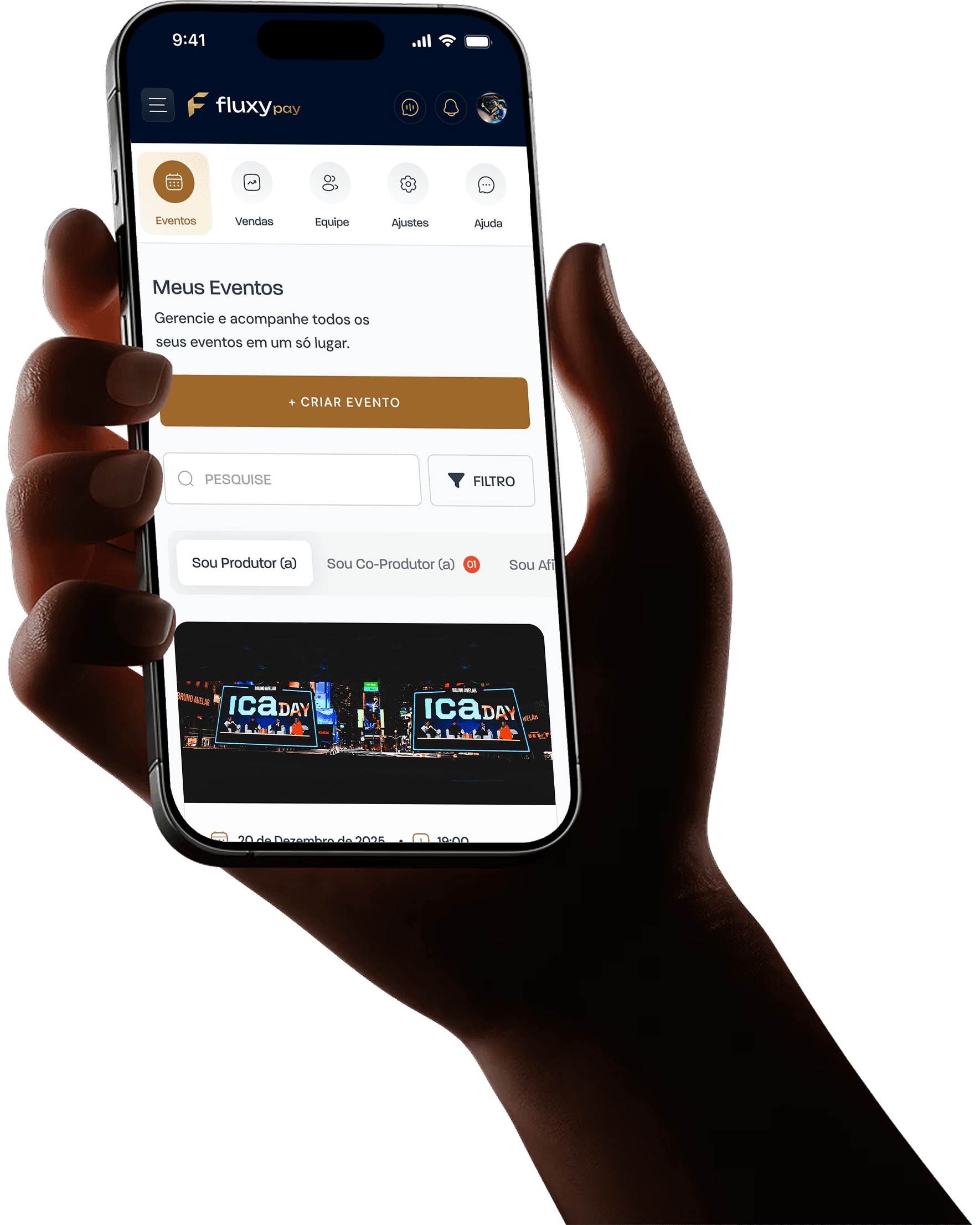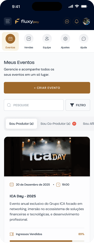 Gerencie todo o seu evento na palma da sua mão. Crie multiplas ofertas, gerencie equipes com níveis de acesso, realize edições em participantes, valide ingressos via qrcode e conte com um app para o seu cliente visualizar todos os seus ingressos.
